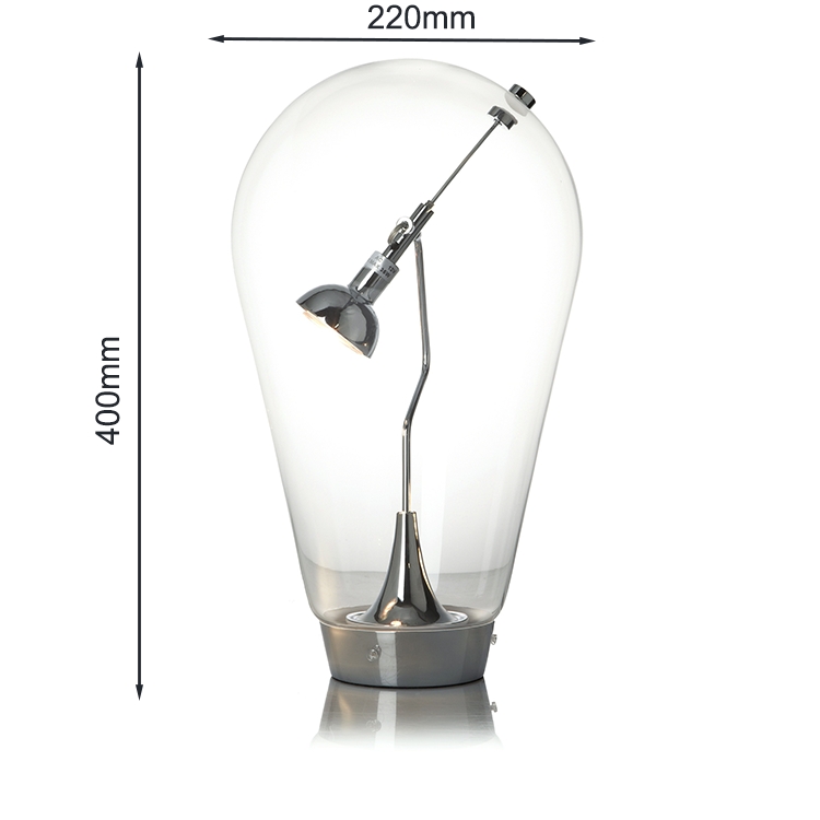 Carbon Steel Base with Clear Glass Dome-Table Lamp features a durable carbon steel base paired with a clear glass dome, offering a minimalist yet striking design that suits any contemporary space. • Color: Silver • Replaceable LED module G4 LED • Voltage: 100-240V • Power: Max 5W Size: D220*H400mm