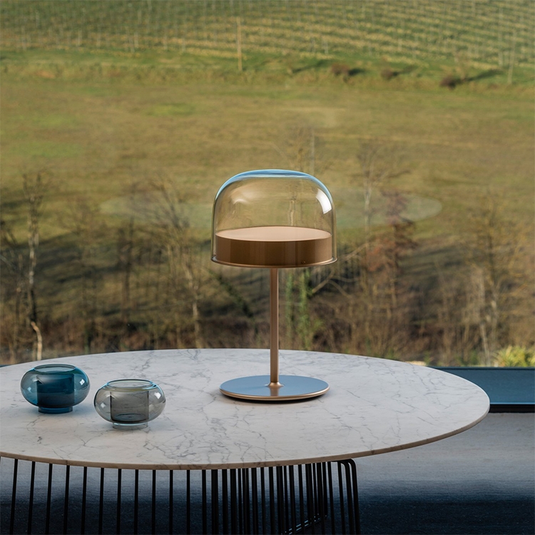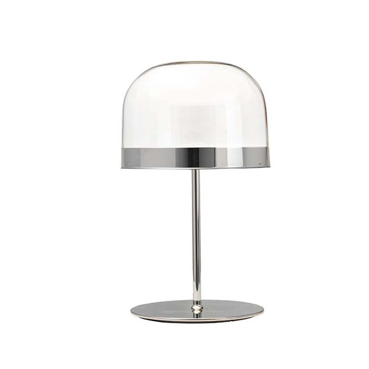 The classic lamp with a glass shade , produced by the Leds, use internal screens arranged in layers, is distributed regularly across the surface of the discs, magically illuminating them. The bottom disc directs the light output downward, the upper one illuminates the glass cap for a soft, diffused light.
